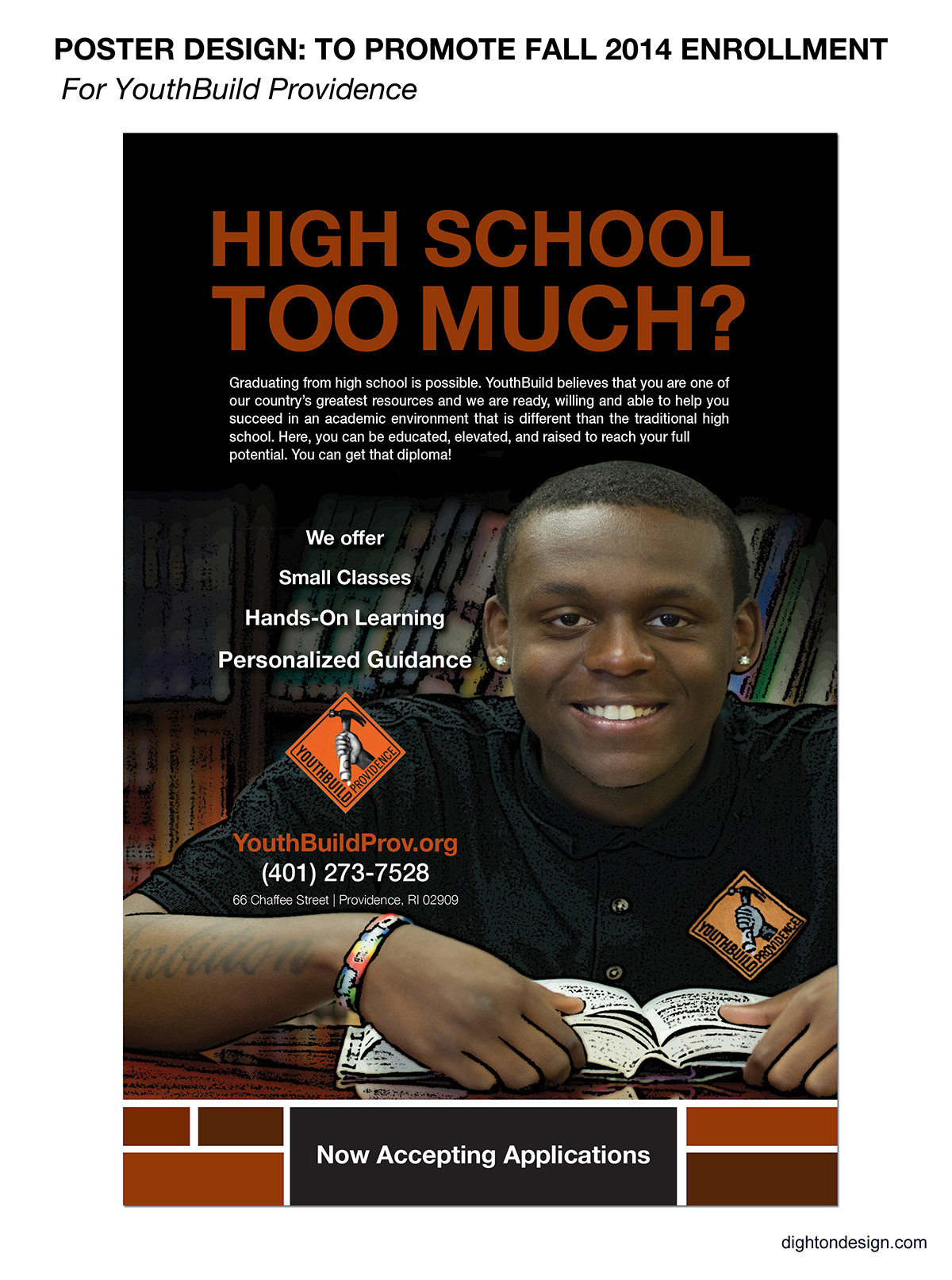 YouthBuild Providence wanted to post posters around the city of Providence to increase fall 2014 enrollment in their hight school.